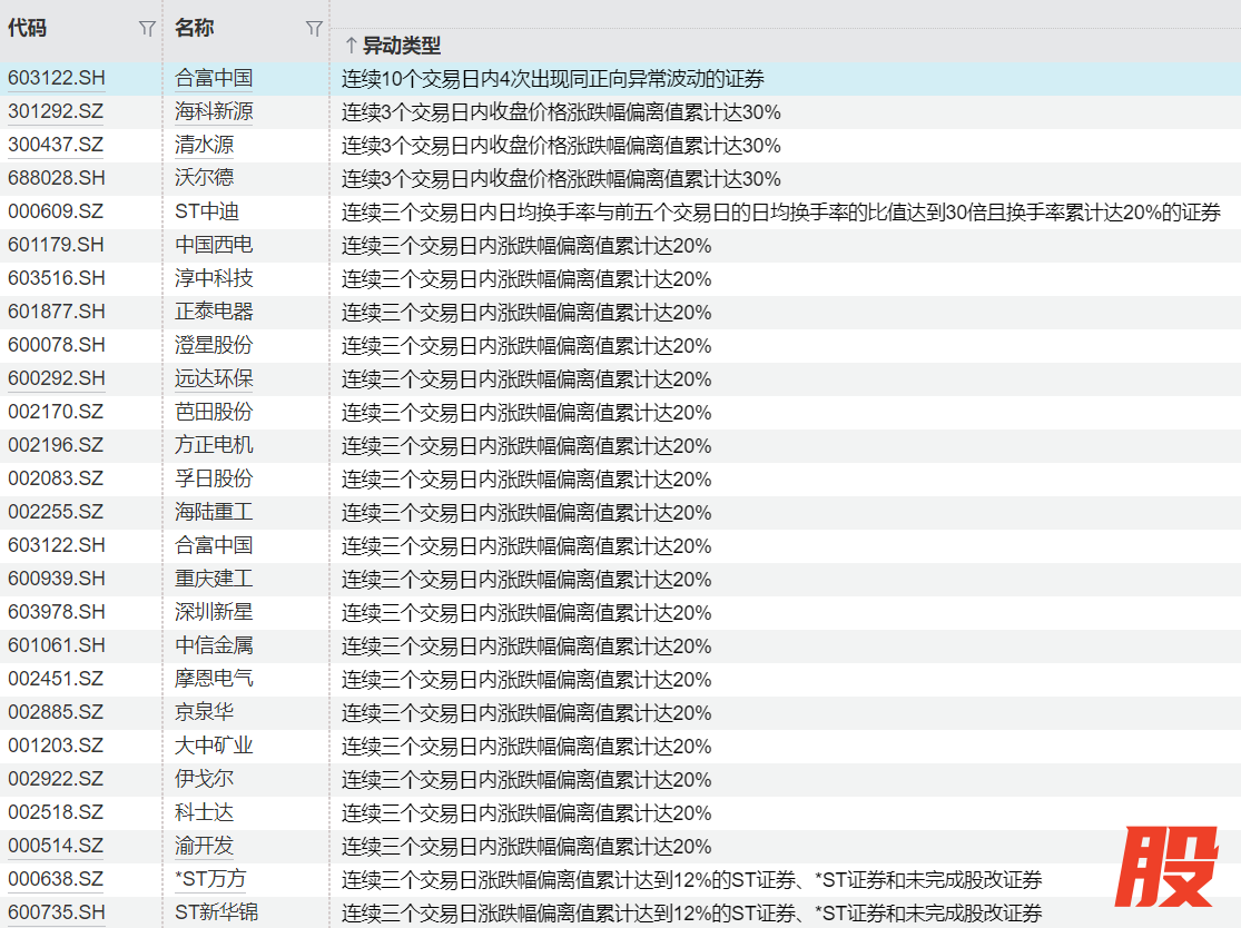 连续异动个股一览连续异动个股一览