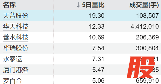 7只个股5日量比超过5倍7只个股5日量比超过5倍